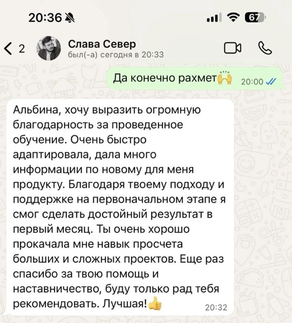 В течение двух недель остаюсь на связи: помогаю, отвечаю на вопросы, контролирую показатели и при необходимости корректирую процессы.